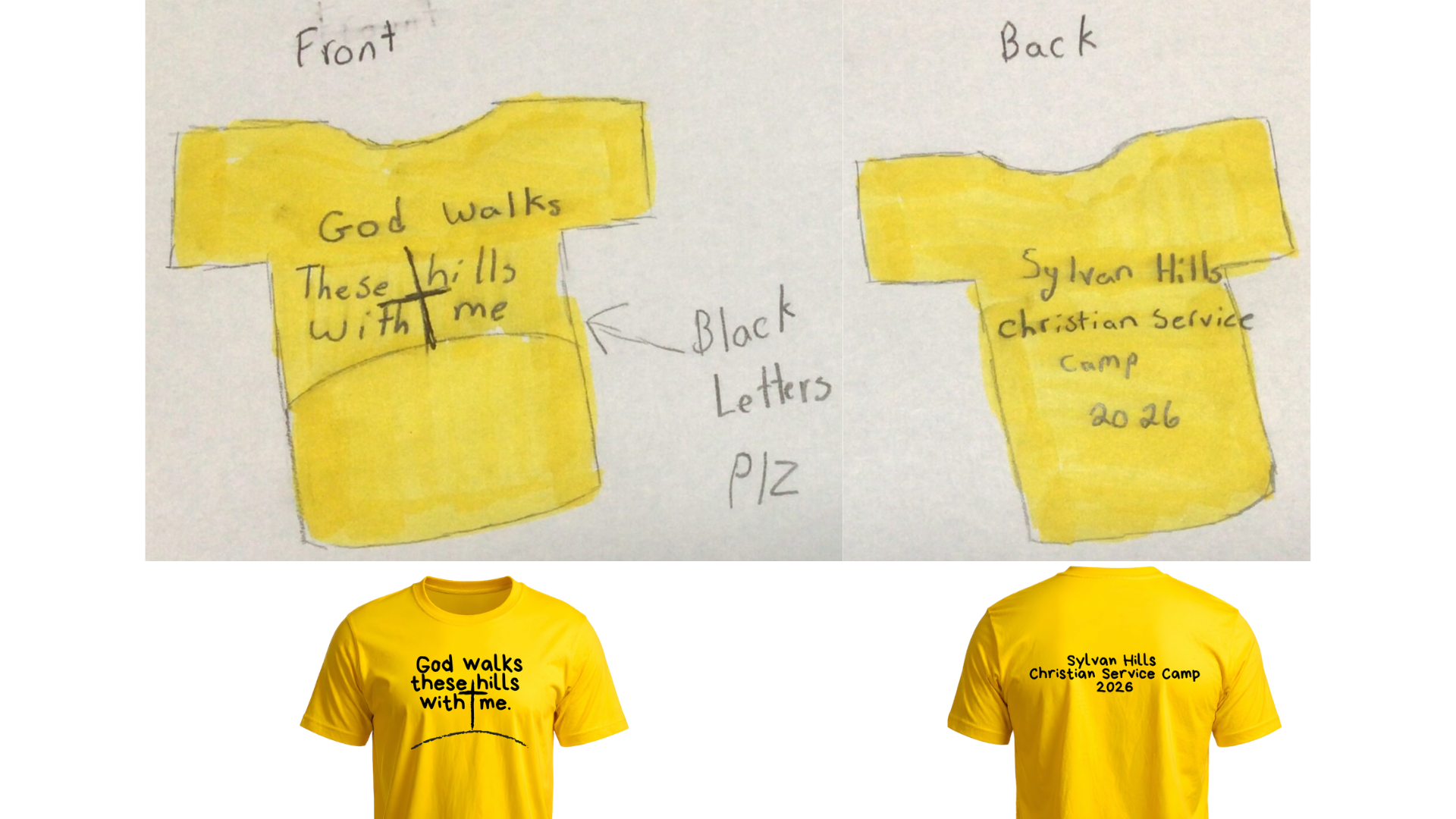 ** Sylvan Hills may “adjust/tweak” designs for printability, readability, and cost. All submissions become property of Sylvan Hills Christian Service Camp. **